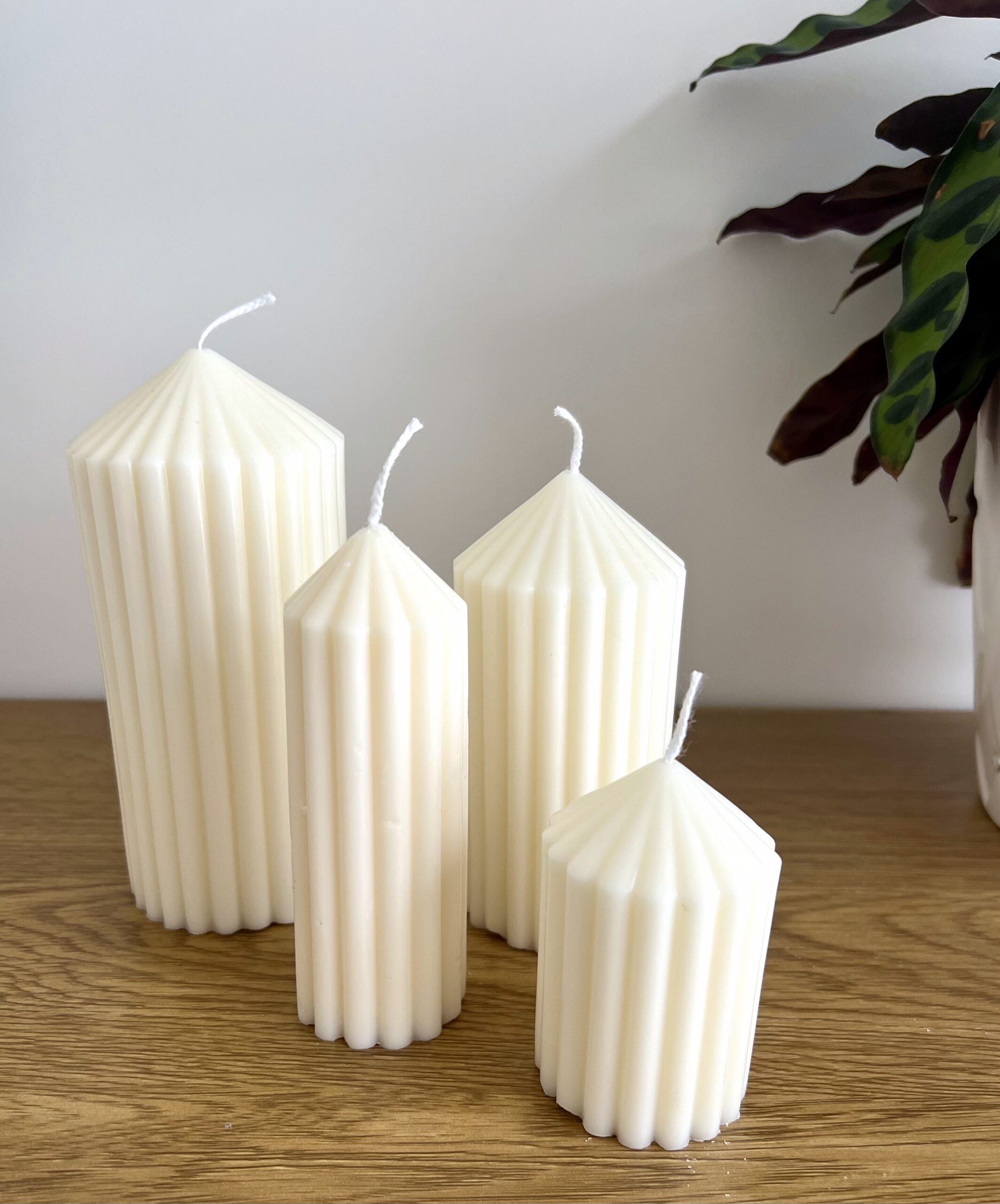 Stylowy zestaw 4 świec typu pillar, który doskonale dopełni aranżację każdego wnętrza. Proste, ponadczasowe formy sprawiają, że świece prezentują się elegancko zarówno pojedynczo, jak i w komplecie, tworząc spójną i harmonijną dekorację.