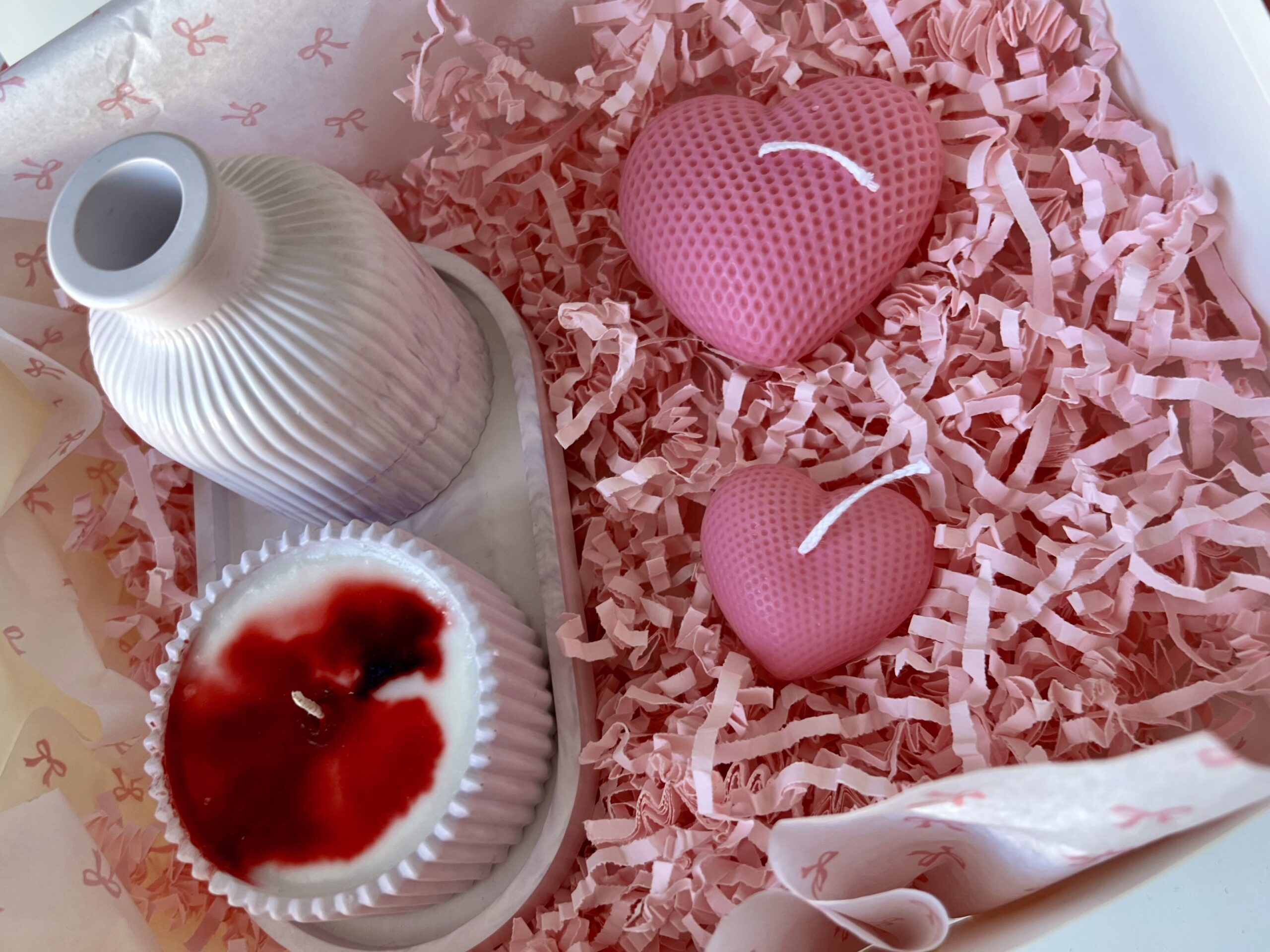 dwie świeczki zapachowe dekoracyjne w kształcie serca